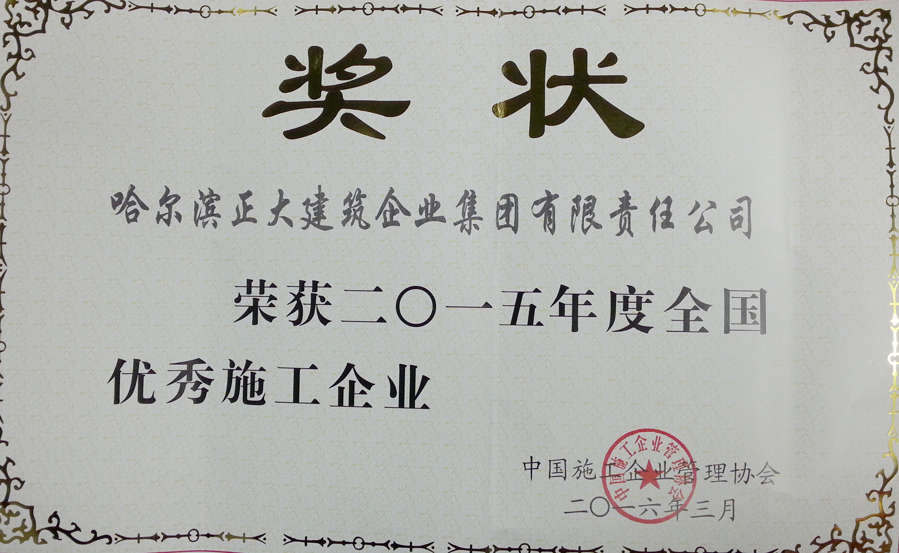 公司成立至今,先后被評為全國優(yōu)秀施工企業(yè)、全國用戶滿意施工企業(yè),全國首批建筑業(yè)誠信施工企業(yè),全國“安康杯”競賽優(yōu)勝企業(yè),全國工程建設(shè)質(zhì)量管理優(yōu)秀企業(yè)、中國建設(shè)系統(tǒng)企業(yè)信用信譽AAA級單位,并多次榮獲省、市“先進(jìn)單位”、“優(yōu)秀單位”、“重合同守信用單位”、“黑龍江省優(yōu)秀施工企業(yè)”、“黑龍江省用戶滿意施工企業(yè)”等光榮稱號。并連續(xù)獲得哈爾濱市質(zhì)量管理先進(jìn)單位、黑龍江省質(zhì)量管理先進(jìn)企業(yè)、黑龍江省質(zhì)量管理獎、黑龍江省“安康杯”優(yōu)勝企業(yè)等榮譽。并在建筑施工現(xiàn)場環(huán)保管理上創(chuàng)造了一項“中國企業(yè)新記錄”。